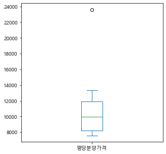 df.plot(kind='box', figsize=(5, 5))