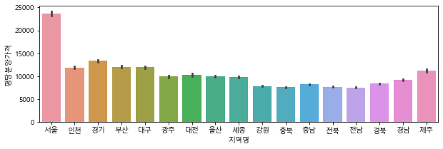 sns.barplot(data=df, x="์ง์ญ๋ช