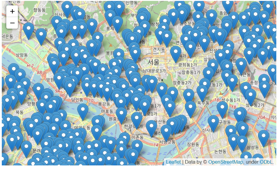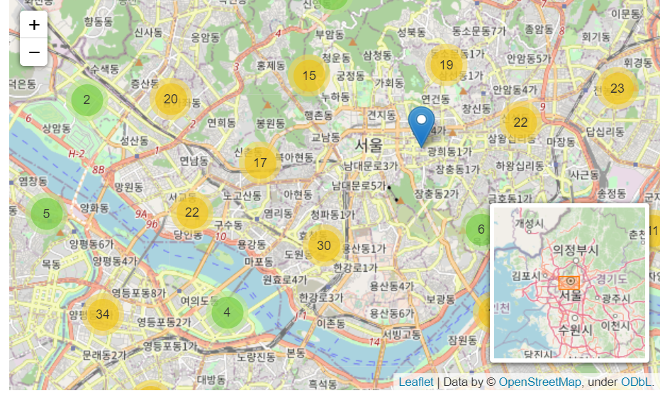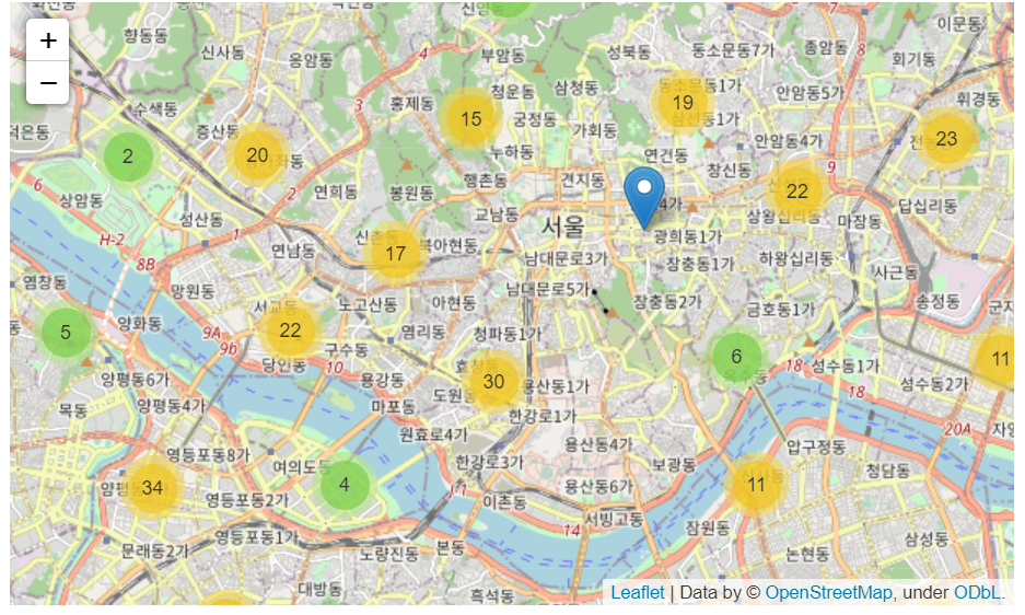 MarkerCluster ์ฌ์ฉํ์ฌ ๊ทธ๋ฃน ์์ฑํ๊ธฐ