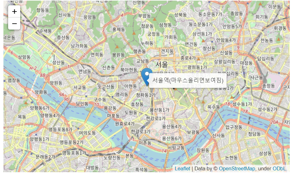 folium.Marker([37.5536067,126.9674308], # ์์ธ์ญ์์น