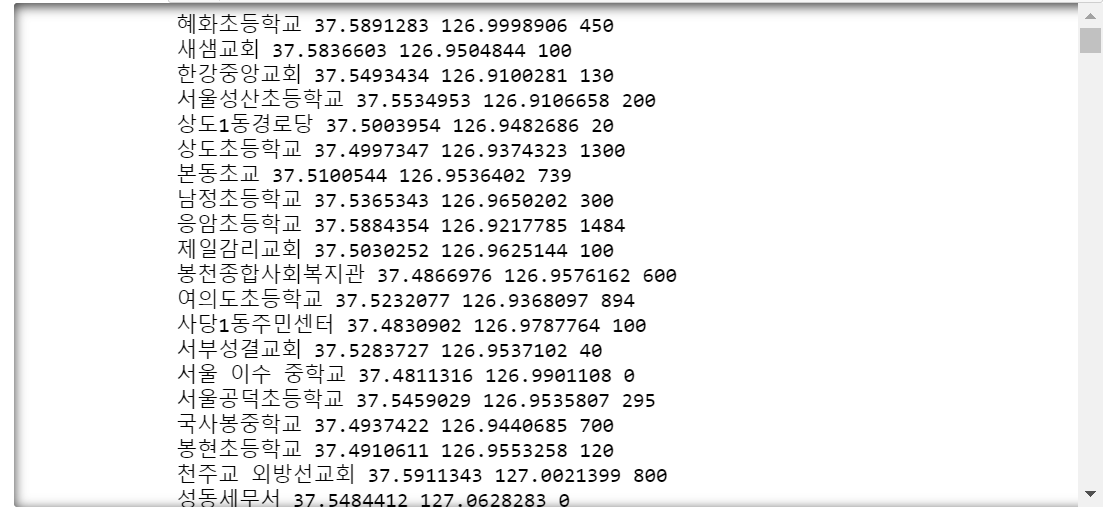 file = './data/์์ธ์ ๋ํผ์ ๋ฐฉ์ฌ์์ค ํํฉ (์ขํ๊ณ_ WGS1984).csv'
