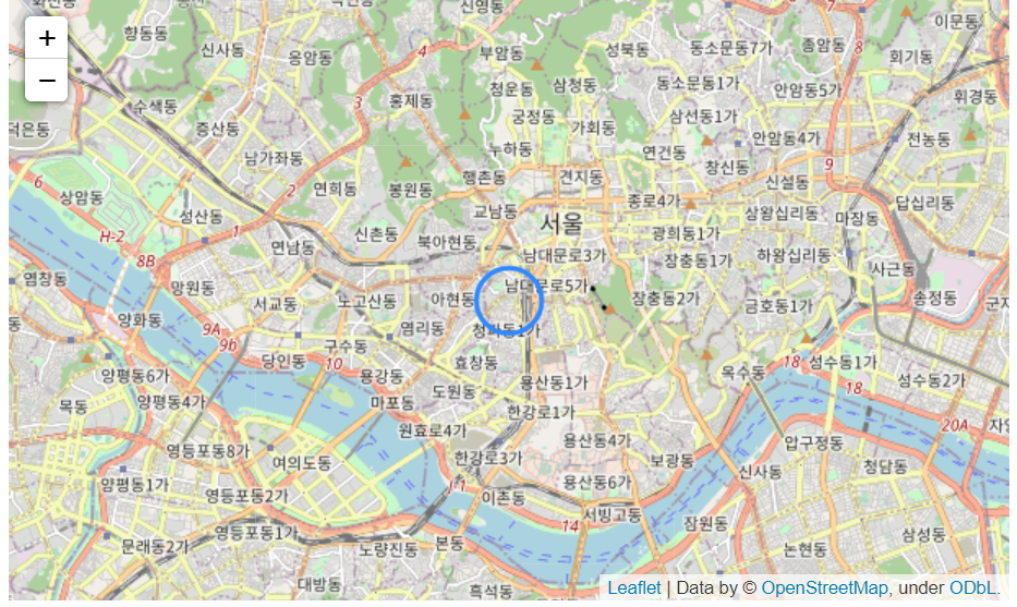 m = folium.Map(location=[37.5536067,126.9674308], # ๊ธฐ์ค์ขํ: ์์ธ์ญ