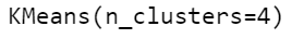 kmeans = KMeans(n_clusters=4)