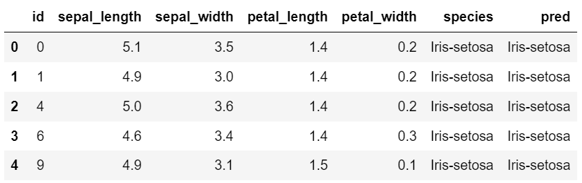 test = iris.loc[ ~iris['id'].isin(train['id']) ]